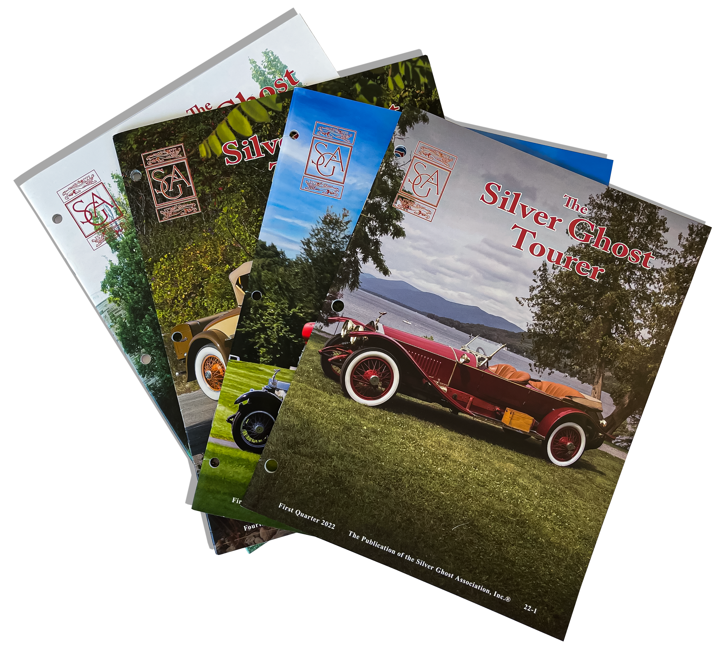 The SGA quarterly publication, The Silver Ghost Tourer, is an invaluable resource with articles on maintenance, repairs, touring, and the history of these fine cars. Those considering purchase of a Silver Ghost will find this publication to contain information which will help them better understand these cars and will aid in guiding their decision as to exactly which type of Ghost they will wish to buy. Previous issues of the Silver Ghost Tourer are available for purchase through the Club Store.
